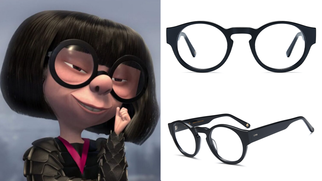 Com seu jeito único e irônico, Edna conquistou seu espaço nos corações dos fãs de animação. Ela é a estilista responsável por criar e confeccionar os uniformes dos Incríveis. A armação redonda e grossa é uma das peças-chave da caracterização da personagem e ajuda a torná-la ainda mais estilosa.